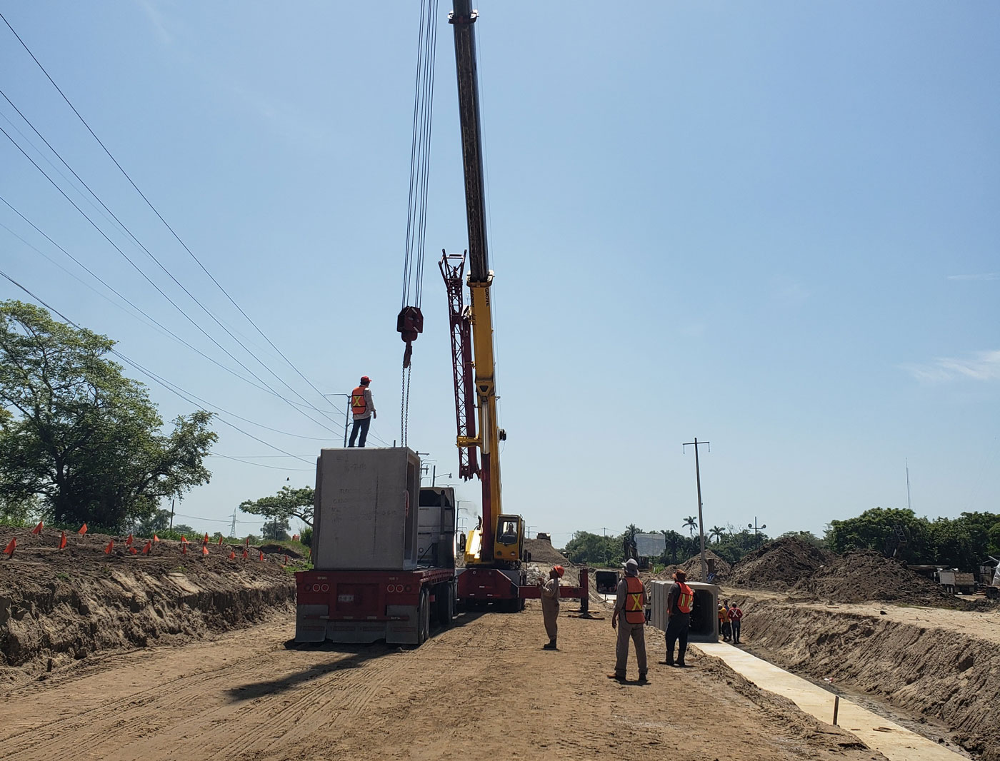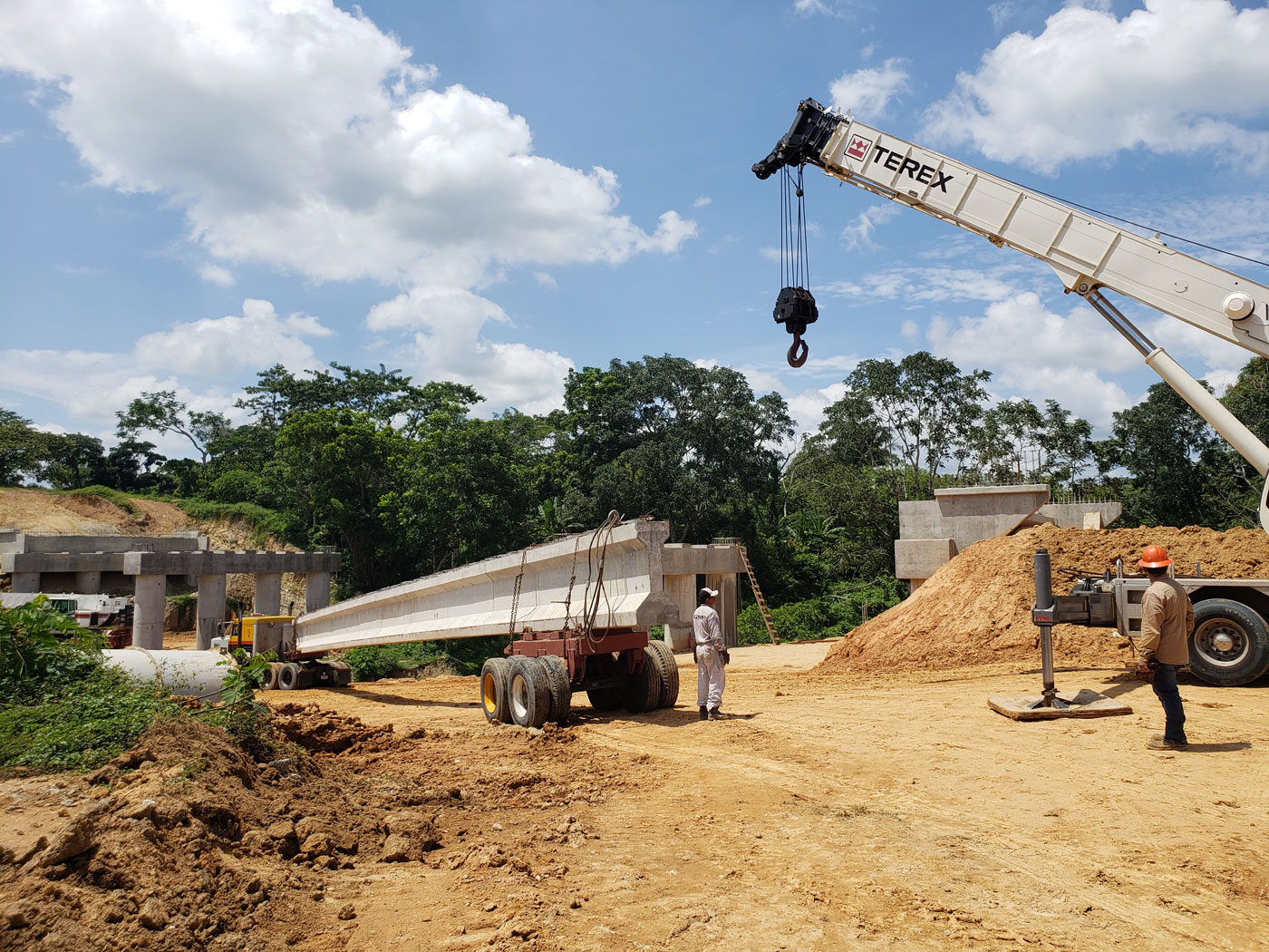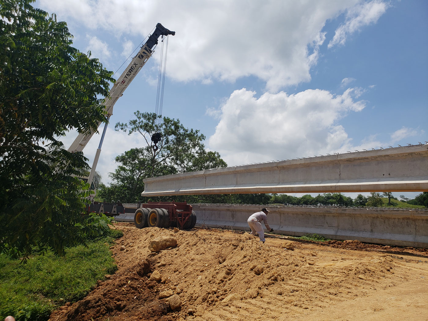 Instalación de traves de puente en construcción de carretera Chontalpa a cartera federal 145D